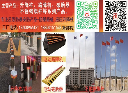 杰特力升降路樁&路障的應(yīng)用升降路樁廣泛用于城市交通、及國家重要機(jī)關(guān)大門及周邊、步行街、高速公路、收費(fèi)站、機(jī)場、學(xué)校、銀行、大型會(huì)所、停車場等許多場合。通過對(duì)過往車輛的限制,有效地保障了交通秩序即主要設(shè)施和場所的安全。 1、國家機(jī)關(guān)和等重要單位大門:安裝升降防暴路障,可電動(dòng)、遙控或刷卡等方式控制升降,有效阻止外單位車輛進(jìn)入和不法車…post time:2019-07-05查看詳情 >>